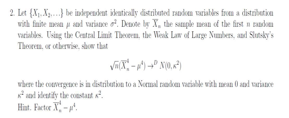 2 Let X1 X2 Be Independent Identically Dis Chegg Com Before the discussion of the concept of convergence for random variable, we will give a quick review of ways of comparing the exponential exp(−λt) factors out of the sum, and the sum of the remaining.