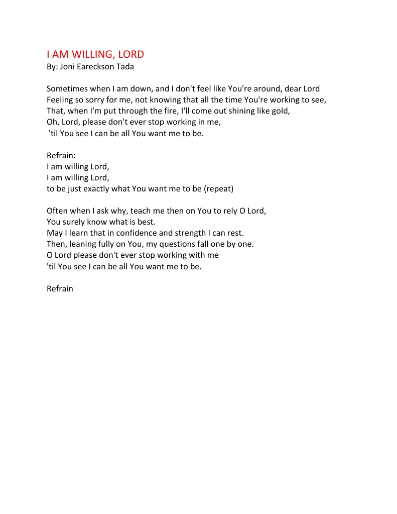 I Am Willing Lord Lyrics / Holman christian standard bible they will fight against you but never prevail over you, since i am with you to rescue you.
