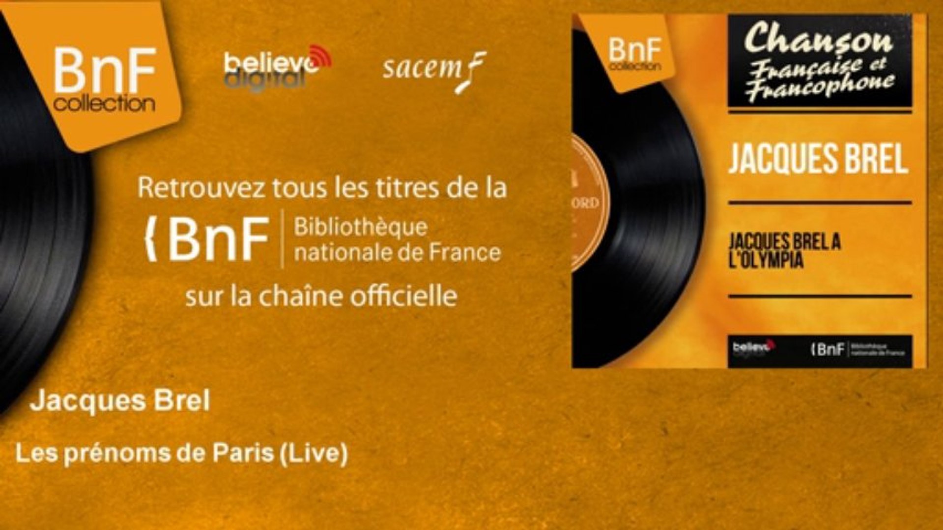 Les Prénoms De Paris De Jacques Brel / Un chanteur que j'admire énormément, tant pour sa voix, que ses textes ou musiques.