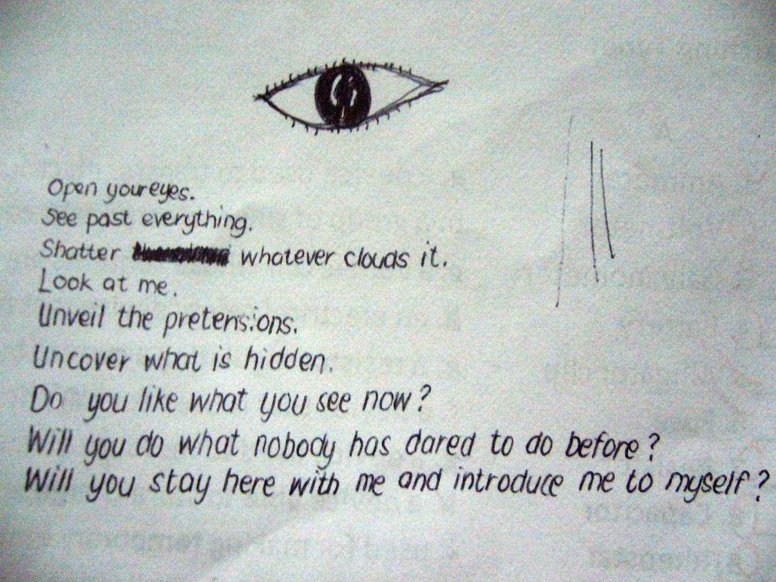 Unveil My Eyes / In the morning when i wipe my brow wipe the miles away i like to think i can be so willed and never do what you say i'll never hear you and never do what you say.